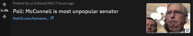 This made me smile, its refreshing that so many other people see McConnell as the weaselly obstruction piece of shit he is. Hes a more in depth article on why McConnell sucks.